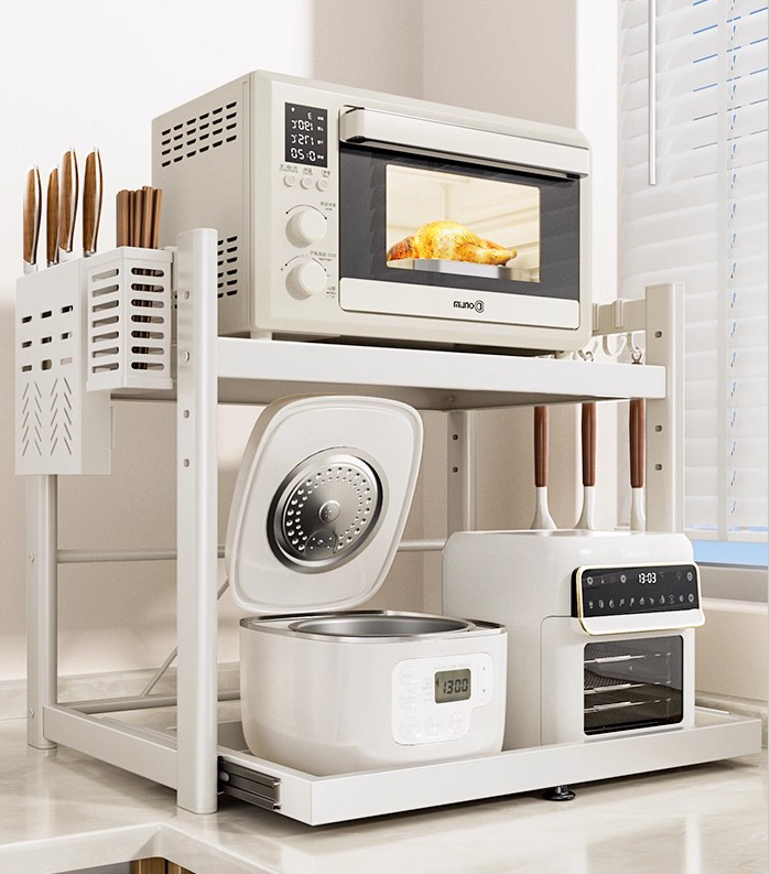 Til mellemstore til store køkkener: Større tilrettelæggere (såsom udtræksskabssystemer, redskabsbakker i flere niveauer eller vægmonterede værktøjsstativer) kan håndtere flere ting uden at skabe rod. De er især nyttige, hvis du har en bred samling af værktøjer eller krydderier, da de forhindrer overbelægning i standardskabe.