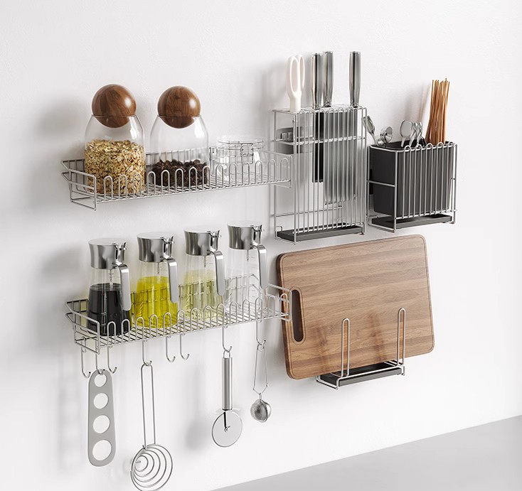 For små køkkener med begrænset bordpladeplads kan brug af vertikale opbevaringsværktøjer opnå en "pladsforøgende" effekt uden at udvide området. For eksempel kan en flerlags lodret krydderestativ stable krydderier opad, og forvandle den oprindelige spredte placering, der optager en halv meter bordplade, til et lille område på kun ti centimeter i diameter. Det vægmonterede krydderestativ er endnu mere en "pladsbesparende artefakt" - fastgørelse af den på væggen ved siden af komfuret holder ikke kun bordpladen helt tom, men sikrer også, at krydderier er inden for rækkevidde, når du laver mad.